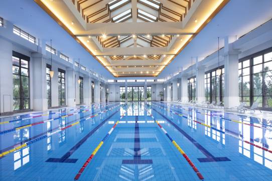 国内外罕见的硒锶养生温泉,国际标准室内泳池及室外游泳池、健身房、网球场、篮球场、羽毛球馆、壁球室等多种专业运动场地助您放松身心,保持活力。