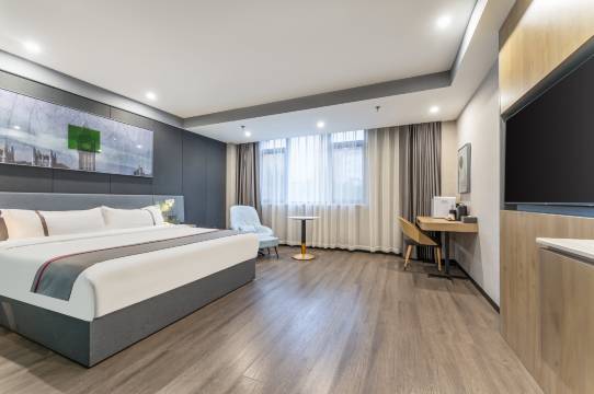 房间宽敞舒适,干净卫生,设施齐全,交通便利,楼下小吃很多,与万达广场一道之隔,吃喝玩乐一应俱全!酒店出门左转有猫咖,右转有狗咖,爱好动物者友好社区!