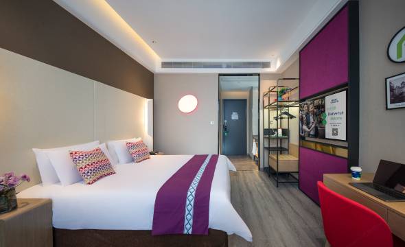 很不错的一家酒店,出游必选的连锁酒店,酒店环境舒适,进入大门就迎来了前台小姐姐的温柔笑脸,很治愈,刚到酒店时没注意到地下停车场的指引,前台小姐姐还跑出来帮忙指引,就服务这点就赢过很多酒店了,房间卫生挺干净的,设备齐全,第二天的早餐很合口味,品种也多,一次最满意的住店感受,值得推荐