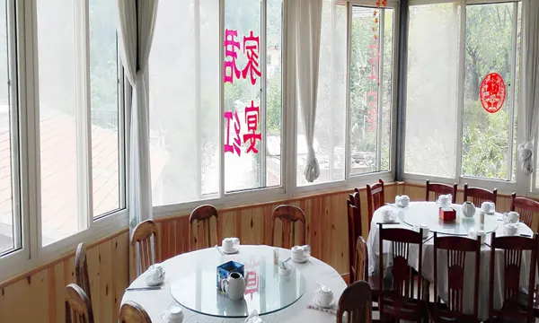 坐落于国家5A级景区---崂山北九水。这里溪流潺潺、植被翠绿、鸟语花香、风景如画;春末夏初,北九水景区樱红杏黄、茶叶飘香、山珍美味令人垂涎;夏到深秋,游人接踵,赏景、品茗、尝鲜好不惬意。本店集餐饮、住宿、娱乐、休闲于一体,营业面积近500平方米,可同时容纳100余人就餐;拥有多间标准客房及会客厅、娱乐室、大通间,可同时容纳20-30人住宿。全体店员竭诚为您提供鲜香美食和舒适温馨的休闲空间。价格公道,童叟无欺!