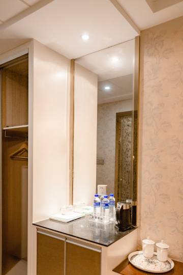 房间装修精致典雅,欧式家具搭配精美背景墙,格调十足。床铺柔软舒适,书桌和电脑一应俱全,满足办公娱乐需求。卫生干净整洁,细节处尽显用心,服务周到贴心,入住体验超预期,值得再次选择。