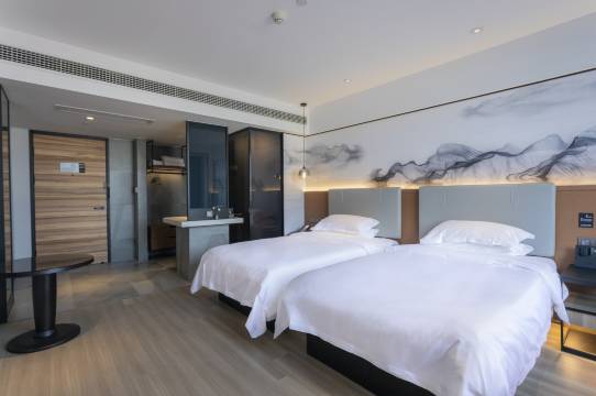 这个酒店地理位置不错,从里到外都显得很时尚,住着舒服,床垫很软,枕头也很舒服,室内不但有座椅,还有沙发灯也很柔和,还有智能管家。住在屋里很有趣。卫生间干湿分区,很宽敞,水、沐浴液这些都非常好,住在酒店有家的感觉。酒店物有所值,性价比超高。上次我们到桐柏来住的一家酒店糟糕,这次我们感到非常好,非常满意,下次还来好环境好服务好。