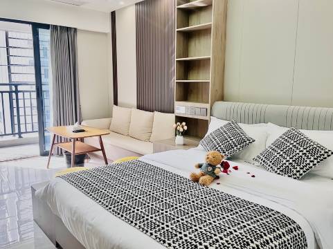 欢迎入住本店,希望以好的服务干净舒适客房体验带给您。客房都独立带有冰箱,洗衣机,阳台等设备。希望给您带来家的感觉,我们将以热情的服务,舒适的房间,期待您的到来。我们,在这里,等您来。