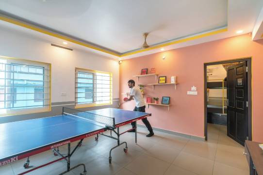 这里非常漂亮干净。大厅里有游戏区,提供乒乓球、国际象棋和足球。