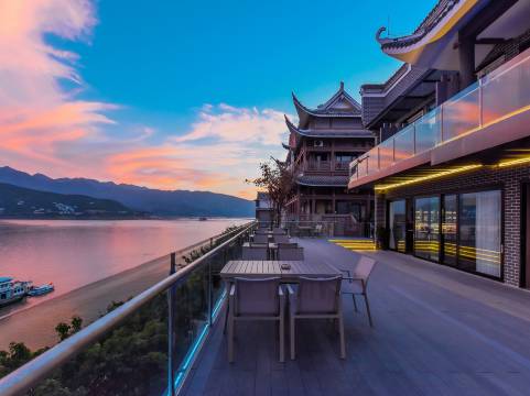 一个吹着浪漫风的酒店。住的江景房,阳台很大,在阳台看长江上船来船往,十分惬意,房间也大,前台小姐姐很温婉。