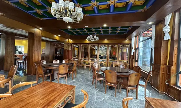 酒店装修风格为藏式古典风格、以藏餐和中餐结合、合众口味,酒店宗旨是顾客至