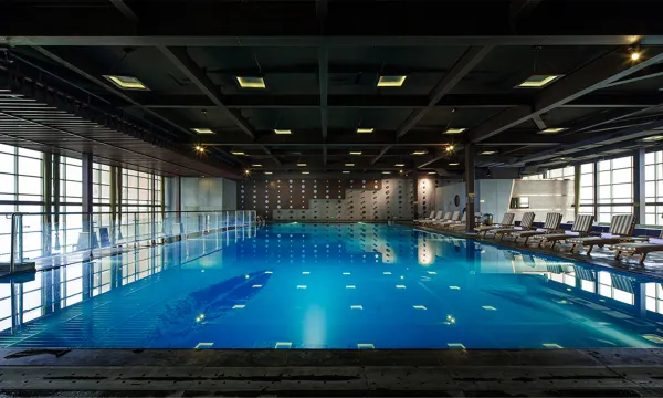 酒店设施配套完整,有恒温游泳池与健身房可免费使用,房间宽敞整洁,中式的装修风格雅致温馨,暖黄的灯光和木质家具搭配适宜。