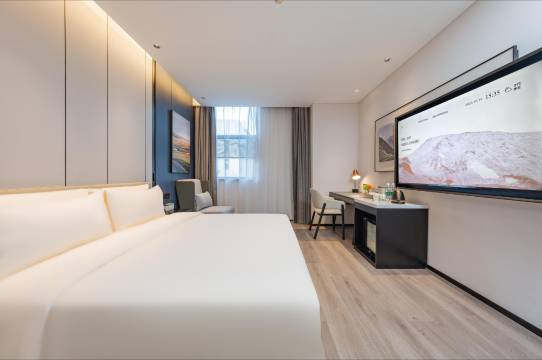 酒店设计现代,商务文艺范。客房均采用普兰特系列优质床品。配套有中央空调,冰箱、200M高速WIFI全覆盖、健身房(汗出)、洗熨烘自助洗衣房(出尘)、中西自助早餐厅(相招)、会议室(共语)以及流动图书馆(竹居)等配套设施。在这里能够休憩、充电、放松、是您商务出行及旅游的优质选择。