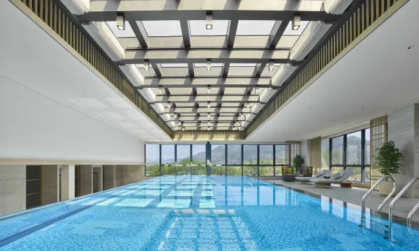 酒店设有410平米温馨有趣的室内儿童乐园,配备丰富多样的游乐设施和玩具、阅读书籍,包括攀岩墙、蹦床、滑梯、海洋球池、秋千、城堡等,让大小朋友在轻松安全的环境中享受愉快的亲子时光。健身房配有必确®品牌运动器械,拥有270度视野的室内恒温网红无边泳池。