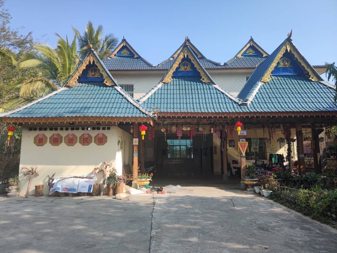 就在植物园旁边的城子村,开车到植物园只需5分钟,千万不要觉得是傣族村落就有心理阴影,经历了脱贫攻坚后的傣寨已经是焕然一新,基础设施应有尽有,老板家的房子也是新修的。