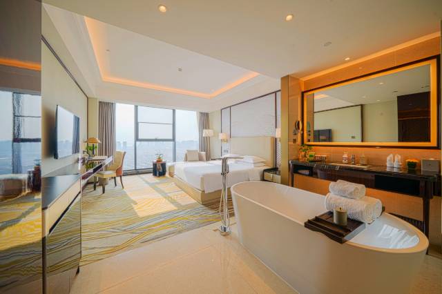 入住的豪华大床房完全超出预期:全景落地窗将城市天际线尽收眼底,每天清晨被朝阳温柔唤醒;卫生间干湿分离设计合理。