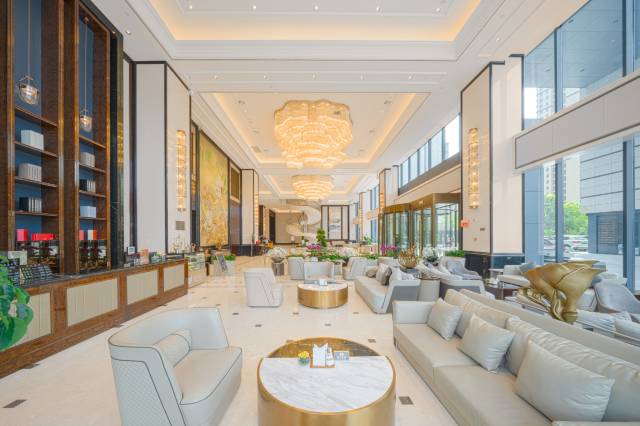 杭州滨江开元名都大酒店矗立于杭州滨江区心脏地带,坐拥“创新硅谷”与“亚运主场”双重优势,钱塘江景与城市繁华交相辉映,交通便捷,距西湖、湘湖等景区约15分钟,距主要交通枢纽约30-40分钟。作为集客房、餐饮、康体于一体的综合性豪华酒店,此处致力打造一站式婚宴厅服务标杆:拥有两个气势恢宏的千方无柱宴会厅,单厅可容纳55桌婚宴,完美承接大型婚礼;搭配10余个多功能厅,同样适用于精致中小型婚礼,灵活空间适合各种婚礼风格;约650平米的户外草坪,此外,酒店约650平米的户外草坪,及空中花园网红打卡婚礼场地,更为草坪婚礼与户外婚礼提供了自然浪漫的场所。酒店锦里甄选餐厅与汇锦轩中餐厅提供丰富美食与私密商务宴请服务,豪华客房配备落地景观窗与定制寝具,健身娱乐设施一应俱全,为宾客带来舒适惬意的商旅与休闲体验。