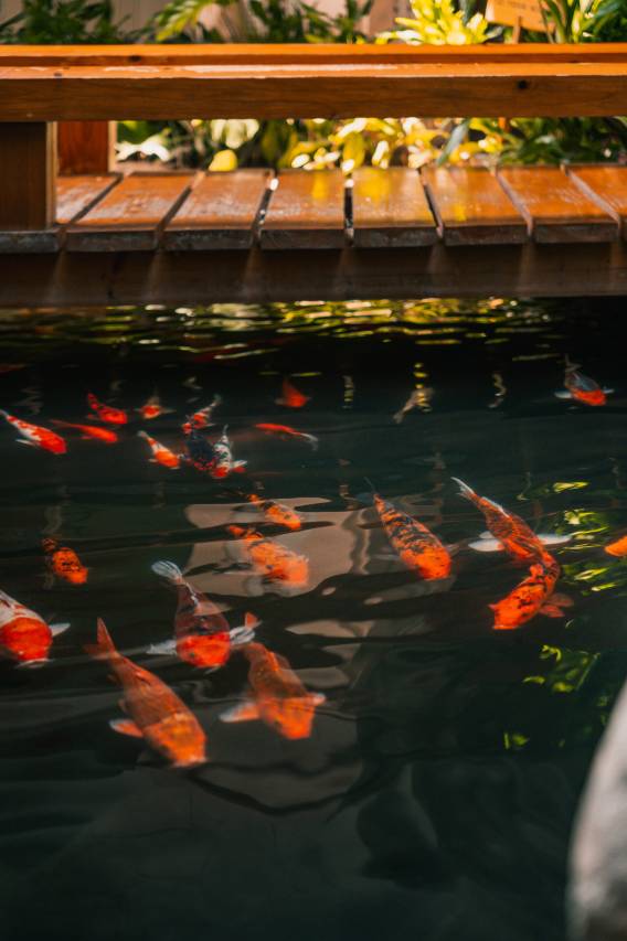 一楼有个鱼池 很干净 禁止投喂
