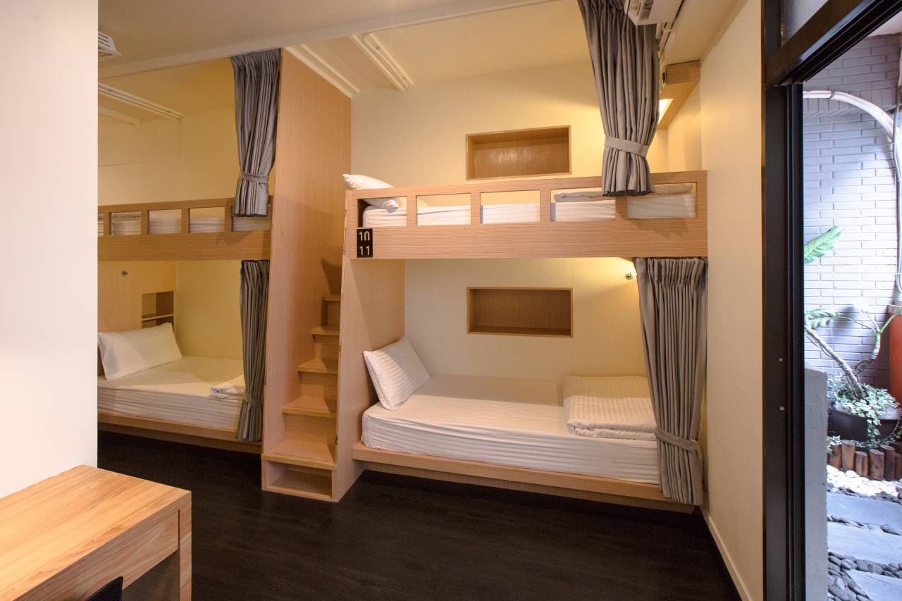 客房内以洁净简约的风格搭配舒适的上下铺,独特木制床架与独立筒床垫,坚固稳定的阶梯式楼梯,让上下床更安全。而馆内设有干湿分离的卫浴设施,甚于环保理念,馆内皆不提供个人卫生用品。
