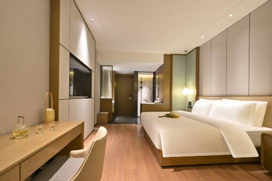房间很大,采光极好,毕竟三面落地窗。床品舒适,洗澡水量充沛,我订的这个房型还有浴缸。空调出风口不对着书桌直吹,这点对商务出差人士极其友好。前台服务周到热情。