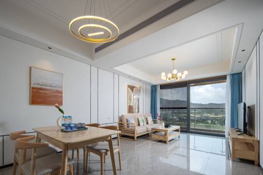 【配套】装修很新,轻奢风格,套房应该都是双卫,贯穿的阳台,看海景,吹海风,非常舒服,3岁小孩晚上11点都不睡要坐在阳台数飞机,看星星;