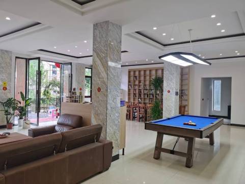 住的很舒服,很开心,房间很干净!公区超大,设施齐全!有麻将,橡琪,泳池,电梯,台球,壁炉,哇,休闲生活的必备,闲暇时可以多住几天!菜的烧的特别好吃,份量很足,青菜都老板娘临时菜地现采的,新鲜的很!