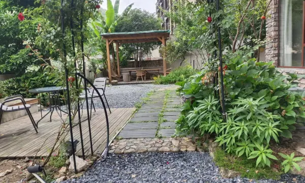 民宿位于大明山脚下,离临时检票口步行约步行7~8分钟,是在景中村里面,自驾游方便,乘公交:杭州东站过来的车子可以直接停门口,周边还有很多景点:牵牛岗,十门峡,太子尖等。