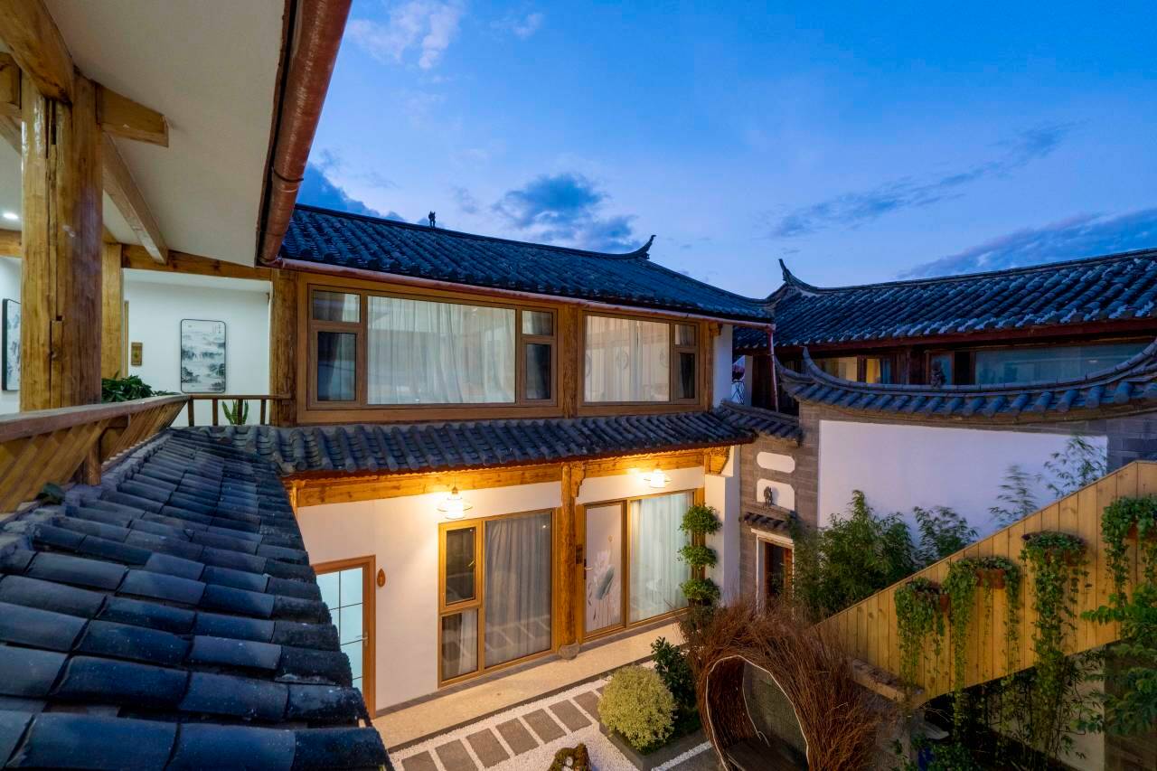 庭院设计充满纳西风情,雕花木窗与绿植相映成趣, 房间收拾的很干净
