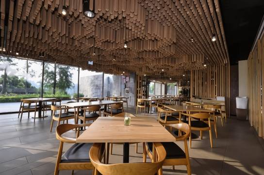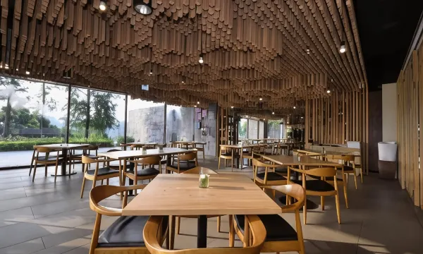 徜沁在茂密竹林里,感受微风轻拂,聆听夏日蝉鸣,内敛典雅的黑观音石,呈现建筑物特有的朴质氛围,让品味更具深度。极简线条建构起会馆整体空间,撷取大自然元素为催化剂,缜密处理光线与空间配置,呈现出空间、时间、型态三者融合为一的新视觉感受。