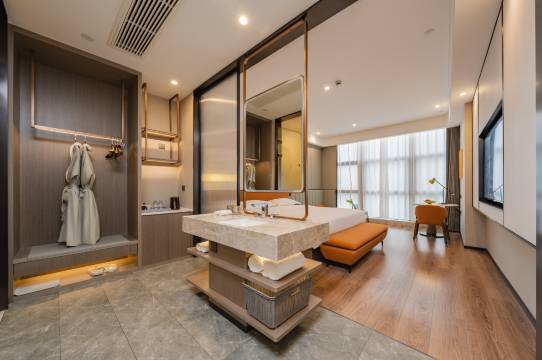 酒店很新,到周边风景区旅游很便捷。昨晚预定的颐居家庭房免费升级为景观家庭房,面积更大,楼层更高,视野开阔,住得很舒心。今日早餐很丰富,前台很热情,有一种宾至如归的幸福。值得下次再选择。