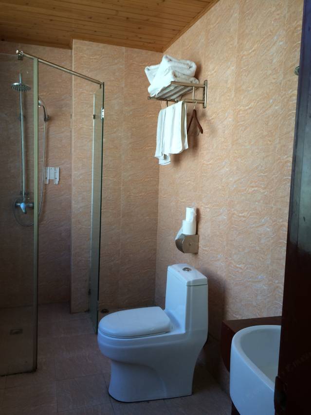 没想到石棉县这个四面环山的县城里面竟然如此热闹繁华,宾馆房间也很大,虽然装修年代略旧,但该有的设施都有,也有独立的停车场,停车方便,离安顺场景区只有十几公里车程,很好