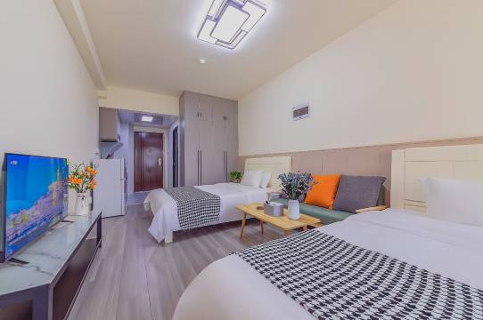 公寓酒店,价格非常实惠,整体空间也大,楼下也有超市。12点退房,全程网上操作。
