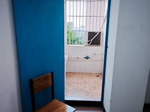 比较干净,梳妆台有洗漱用具,阳台有晾衣架,通风也比较好。