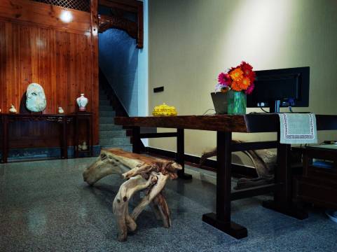 其实入住前猜测觉得跟其他酒店没啥区别,住宿嘛,大同小异。但是当我带着儿子拖着疲惫的身躯和灵魂到店的时候就感觉不一样了。徽派古典的装修风格让人眼前一亮,我是比较喜欢徽州古风的。进店的时候看到三个13岁左右的孩子在全神贯注看书,大人可能在里头忙。最先发现我们的是小女孩,大概是店家的女儿,热情地跟我们打招呼,一边呼唤着大人,一边还细心的给我家儿子倒了杯凉白开,切了苹果,真的很好客的小女孩。给我们疲惫的行程增添了一份暖意。。。