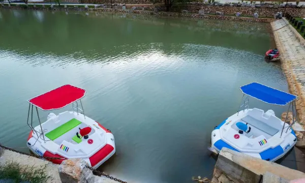 带着老婆和孩子🐶一起来玩的,有很多游乐设施,可以钓鱼游船,最喜欢的是晚上的烧烤,有露天电影和篝火,烧烤非常好吃!