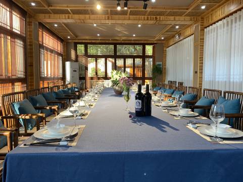 院落有12个风格迥异的客房,引用了十二花神的代表花名做为客房名称,两个用餐的包厢,一个命名十二花宴,一个命名十二先生,这是一场茶与花的美妙碰撞,菜品上也既考虑到口感,也考虑到美感的视觉需求,一场花宴与茶宴的结合也就此开始。命名为百花厅的多功能厅,可以完成宋人四雅的各种雅集体验活动。