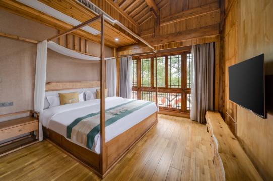 房间现代化设施配套齐全,设有衣帽间、品茶区和睡眠区,卫生间干湿分离,全自动马桶,以及高端卫浴日化用品,给您带给你极为舒适的享受。让您即能感受到隐匿山间的行宫繁华,又能感受到浓浓的人间烟火。
