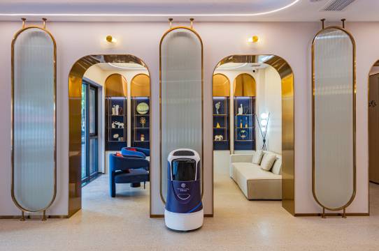 前台服务很好,房间卫生也干净,还有机器人送物,非常好,距离火车站走路几分钟就到了,非常方便