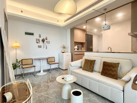 •酒店风格为奶油中古风,酒店位于罗湖CBD蔡屋围核心商圈,靠近罗湖万象城、罗湖口岸、东门老街......,房型有一房、两房、三房,所有房型均为为高层全景落地窗,大部分房型朝南,太阳直射,每间配厨房,可做饭可投影,适合旅居,车位充足(收费),有充电桩。【交通便利/购物生活方便】•一号线(国贸站E口)走路四分钟,大剧院地铁站F口走路6分钟,爵士大厦C座(即云境尚邸体验中心),近罗湖口岸、东门步行街、大剧院万象城、KKmall京基100、地王大厦、国贸金光华、深圳超级文和友、深圳门诊部/深圳中医院、菜市场。【酒店设施】•格力中央空调•极米Z4投影仪•小吉复古冰箱•林式品牌床•雅兰床垫•圈厨复古热水壶•欧派一体式柜体,橱柜•苏泊尔电磁炉、电饭煲•美的热水器卫浴•海尔滚筒洗衣机•科勒马桶洗手盆及五金•进口橡木实木吧台•原创设计吊灯、落地灯【入住管理】提供全程线上贴心服务,所有入住人员实名登记,一人一证,人证相符,房源配置智能密码锁,预定后请联系管家获取入住指引和门禁密码哦。大厦行人出入电梯需要刷卡,初次进入让一楼大堂保安刷卡,到房间后有电梯卡。【吃货知音】周边美食繁多~让人应接不暇,贴着肚子来,扶着墙回去。这里有非常出名的「深圳超级文和友!-汇聚特别多一东特色的美食和小吃。其他商场和周边各式粤、港、潮、浙、鲁、川、湘菜等菜系应有尽有。时下流行的地道韩国、日本、西餐数不胜数。深圳密度的美食商业休闲中心,这里有喜茶等超多网红奶茶甜品聚集【周边配套】设施齐全,超多一体式购物商场:万象城、深圳超级文和友、大剧院、kkmal1234、茂业百货、金光华、东门老街等24h设施:便利超市7/11、全家、百里汇、各银行员机医药护理:深圳门诊部/深圳中医院大厦行人出入电梯需要刷卡到自己所住楼层,初次进入让一楼大堂刷卡,房间有电梯卡,,全程线上贴心服务,所有入住人员实名登记,一人一证,人证相符,房源配置智能密码锁,预定后请联系管家获取入住指引和门禁密码哦。