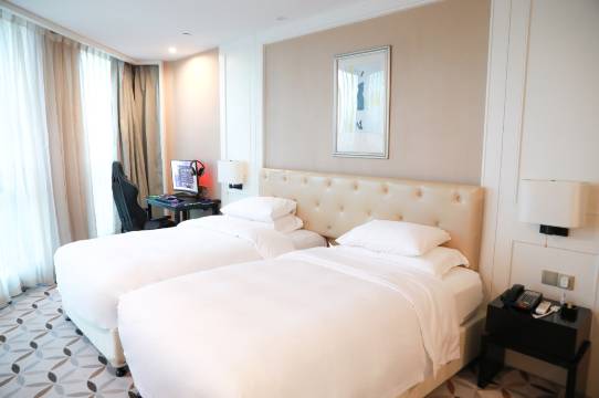 房间很卫生干净,酒店格局很高端,真心值得推荐。房间还有一台电脑,晚上追剧很方便,男朋友很喜欢。装修风格也很高级。
