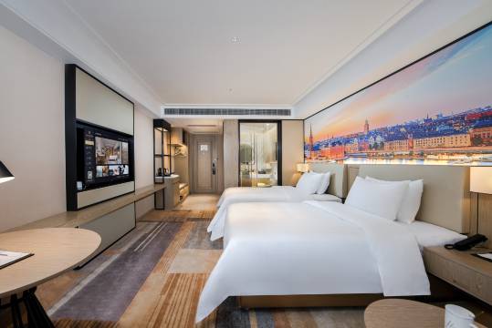 环境雅致舒适,卫生细节到位,前台服务周到高效,房间宽敞明亮,床睡感超棒,配套设施贴心,住得舒心自在,性价比出众,下次还选这家。
