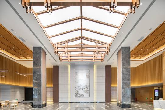 新中式美学:酒店整体采用温润的木质与竹编元素,将燕赵文化意境融入空间,既有现代简约感,又不失东方雅致。