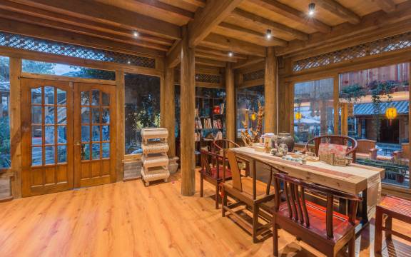 东河客栈,是个温暖的地方。美国总统尼克松与董建华入住过我们客栈古老的楼房,宽敞的院子,精致的客房, 走进东河,浓浓的古韵之风扑面而来,潺潺的流水,淡淡的茶香,幽幽的的思绪…,令人惬意,令人陶醉, 东河客栈的院子里有一条小河,以这条小河为界将院子划分成了两个隔河相望的小院,小河中置放着一个竹制水车,流水经过徐徐升起推向点倾盆而下,给远方到来的客带来一股浓郁的乡俗气息!给原本就美丽的小院带来了一道更加惊艳的风景…… 作为旅途中悠闲惬意的休憩之所,可以在古色古香的院落里品茶思索,尽情仰望丽江透明蔚蓝的天空和洁白云朵;在此淡忘掉时间,平息调整紊乱的思绪,为下一次启程做好充分准备。 客栈拥有宽敞的院子,房间典雅、光线敞亮;内设餐厅、茶室等多处休闲场。 客栈位于大研古城区新义街密士巷44-1号,距离古城入口标志性建筑“大水车”的位置和古城中心“四方街”步行3分钟,离路口两分钟,交通十分便利。东河客栈于2020年重新装修,客房总数35间。