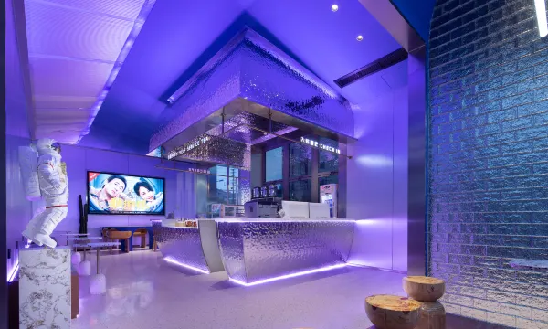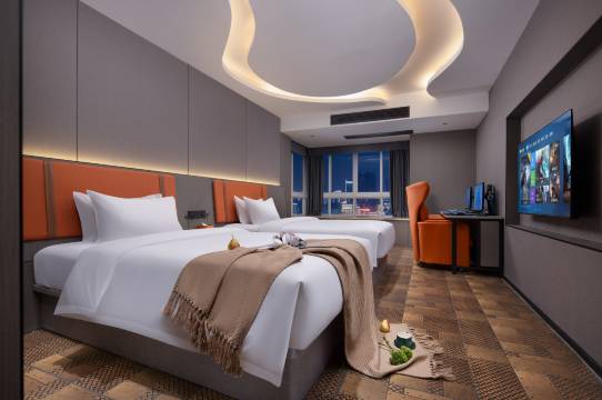 入住体验真的非常不错的 酒店接近了市区中心 出差和情侣入住都是非常便捷的 酒店大厅装修风格有点类似于奶茶的装修风格 是因为酒店有提供免费的果茶 有需要可以给前台小姐姐提 都会做好让阿姨给你送到房间里面的 前台有时候也会有免费小饼干和面包这些