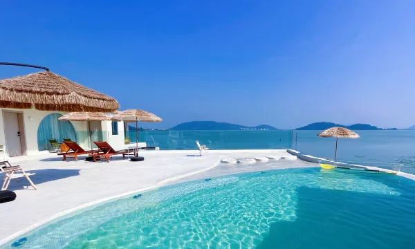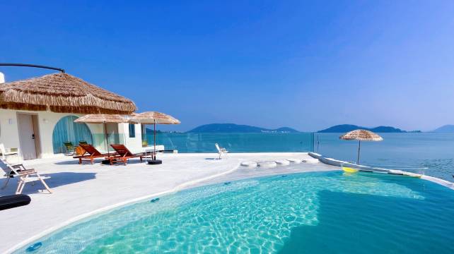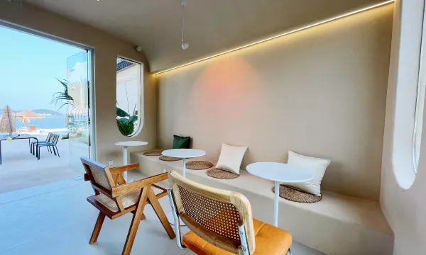 酒店设施干净卫生,前台有畅饮的咖啡奶茶,茶水,老板亲自送房间,房间的装修风格很喜欢,老板服务态度很热心,房间对着太湖,宁静优雅,门口泳池设计很不错!