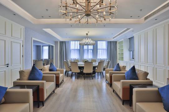 主楼1-8层为酒店经营区域,一楼设有自助洗衣房及机器人服务,2-8楼客房设有多种房型,所有房型均配备LYDEE洗护、智能马桶。2F-8F为客房区域,9F共7个餐饮包厢。