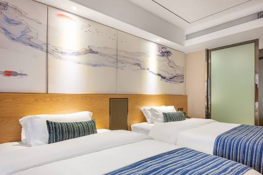 推开酒店房门的瞬间,原木色地板与暖黄灯光交织出温柔的拥抱,窗边纱帘被晚风轻拂,远处城市灯火如星子坠入眼眸。办理入住时前台递来的热毛巾带着柑橘香,客房里提前备好的本地茶饼与手写欢迎卡,让旅途的疲惫瞬间消融。卫浴间的大理石台面一尘不染,淋浴水温稳定得像掌心的温度,床品柔软得如同陷进云端。清晨被鸟鸣唤醒,餐厅里现烤的可颂酥香四溢,现磨咖啡的热气与窗外的晨雾缠绵。离店时服务员主动帮忙提行李,微笑着说“期待下次相遇”,那一刻突然明白,好的酒店从不是冰冷的建筑,而是藏在细节里的温度,是让旅人把异乡当作家的魔法。