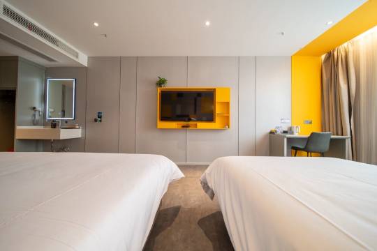 交通便捷,附近就是万达广场,楼下环境一般,但是酒店内部环境还不错。房间设计简约精致,装修风格时尚现代。配备舒适的床品、现代化的淋浴设施、电动窗帘等设备。