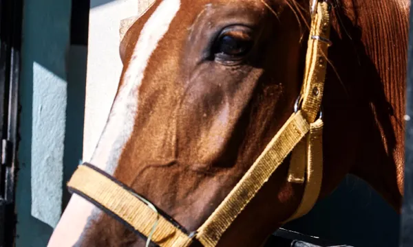 酒店老板养了狗和马,允许我们和它们玩耍,我们觉得这很棒。