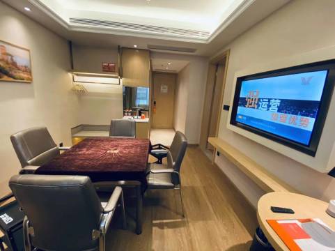 前台服务热情周到!房间干净卫生!周边环境也比较安静!机器人服务也新潮!距离车站也近!价位合理!有需要还会再来!