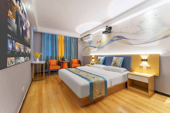 前台服务亲切热情,离汽车站很近交通方便,周边餐饮店非常多,清洁干净整洁,最好的是酒店100寸的投影还代会员非常棒!就是酒店毛巾有点陈旧了但是非常干净。