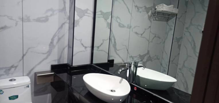 房间很大,干净,浴室很大,淋湿花洒头出来的水好大,超级喜欢,还有吹风机的提示也很棒,不用我到处找。