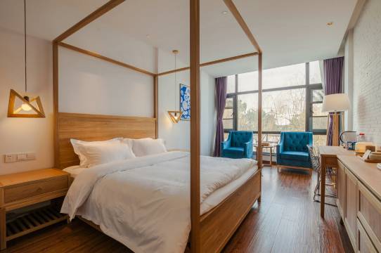 民宿原木定制家具打造高品质居住环境,小资文艺的大型阅读空间藏书万卷,更有亲子区域让小朋友乐不思蜀。这里24小时管家服务,为您提供“吃、住、游”全方位温情呵护。