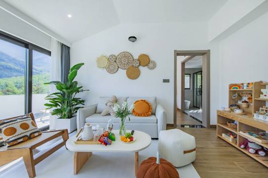 房子在半山腰,空气清新,夜晚星星也很多。一楼的儿童设施区,可以让大人解放双手休息会。老板热情好客,早餐也非常丰盛,推荐!