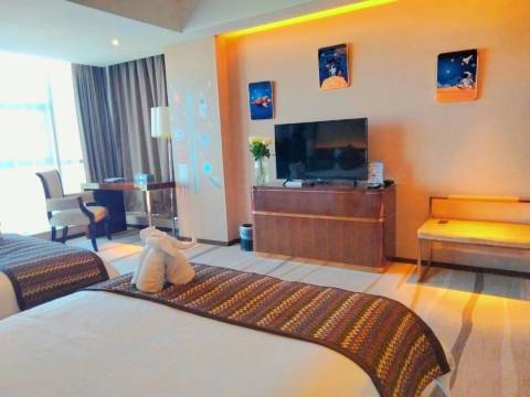 超级不错的酒店,酒店安保人热情的带我们停车,前台也是很快速办理了入住。免押金哦还给我们,很大的酒店,可以可以,性价比很高